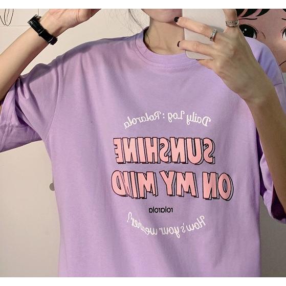 Amazon Dokuichigo 半袖 Tシャツ レディース かわいい 安い 韓国ファッション オルチャン 原宿系 夏 パープル Tシャツ カットソー 通販